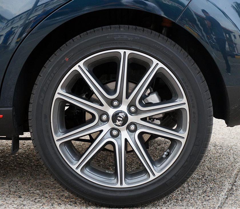 KIA mantiene su alto equipamiento de seguridad desde su versión más básica. Para esta versión únicamente se le agregan los sensores de punto ciego en los espejos laterales.