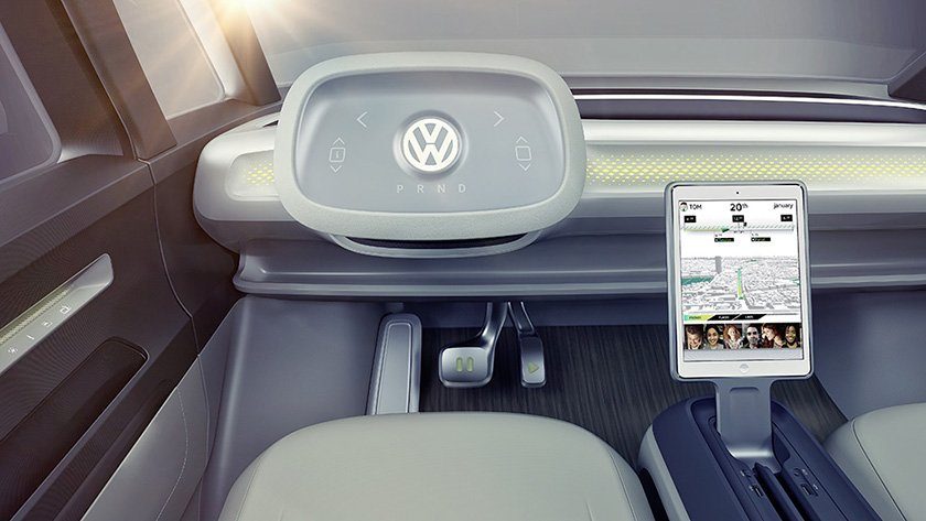 Sobre la autonomía, al activar dicha función, el volante pasará a formar parte del tablero mientras que brotarán de las cuatro esquinas superiores del vehículo los 4 escáneres laser quienes junto a los radares y cámaras ubicadas tanto el la parte frontal como posterior de la furgoneta obtendrá una visión total de su entorno. Según asegura Volkswagen esta tecnología estará completa en 2025.