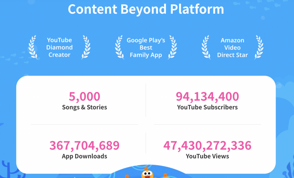 Esto los ha llevado a lograr más de 5,000 canciones e historias, más de 367 millones de descargas de sus apps y más de 94 millones de suscriptores en YouTube, haciéndolos acreedores de premios como el Platino por su canal y lo mejor de apps para familias en Google Play.
