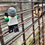 - Este pequeño Lego tiene las manos perfectas para sostenerse de una reja y tomarle foto a un tren que va pasando.