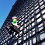 - “Safety First”, que significa “primero la seguridad” es una imagen del Lego de Whyte tomando un riesgo por el arte.