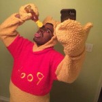 - Así como la selfie ridícula del tipo echándose chocolate en el cuerpo… esta no es tan distinta, lo diferente es que está vestido de Winnie Pooh e intenta comer miel. Sin palabras.