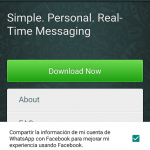 Sin embargo, es posible que finalmente Facebook y WhatsApp vayan a comenzar a interactuar entre ellos, ya que recientemente un desarrollador de Sevilla llamado Javier Santos encontró una nueva opción en la Beta de la nueva versión del mensajero que sugiere que éste podría compartir datos con la red social con el fin de mejorar la experiencia de uso.