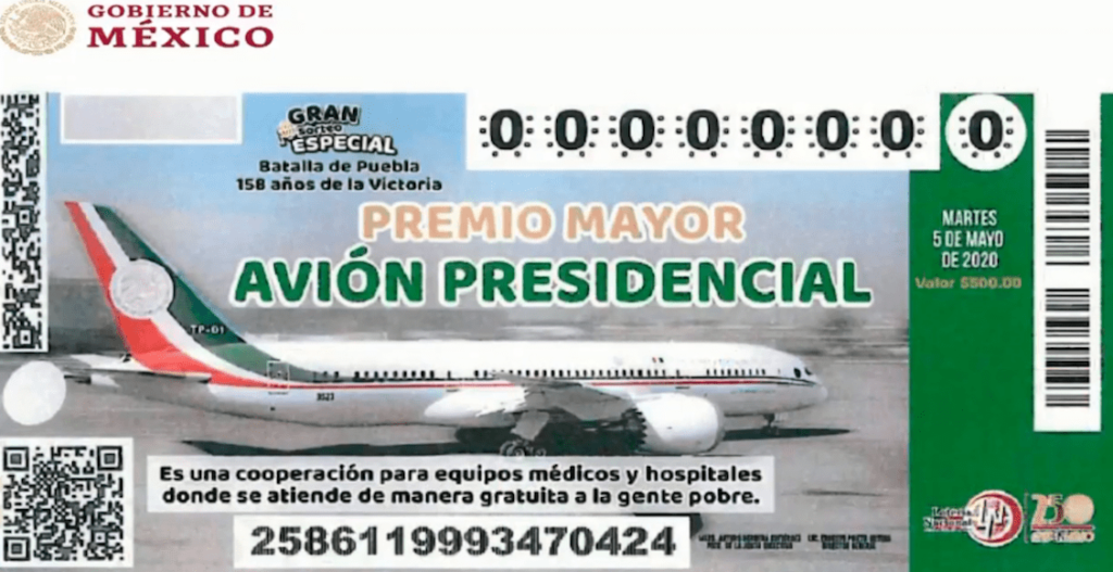 De acuerdo con el boleto, el avión presidencial podría rifarse el próximo 5 de mayo como fecha tentativa del sorteo. No obstante, el Presidente señaló que explora la posibilidad de que el ganador del avión pueda tener ese dinero en un fideicomiso en el Banco de México para que así se le vayan entregando los intereses y después decidir qué hacer con toda esa ganancia.