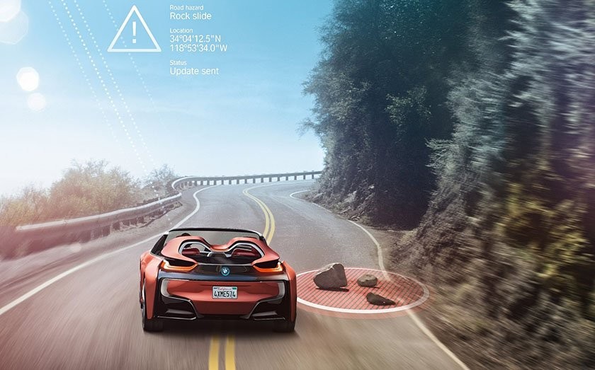 Pasando a la conectividad y dejando a un lado lo obvio como es el Bluetooth, WiFi para actualizaciones BMW nos presenta una especie de red social que se alimentará de los mismos coches BMW donde si detectan algún descenso brusco de velocidad, obstáculo o accidente por donde se encuentran circulando, subirán inmediatamente un reporte a la nube global avisando a todos los BMW cercanos. Esto lo hará de manera intuitiva y automática con el fin de prevenir o evitar accidentes o embotellamientos por los mismos.