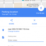 Además de eso, se puede introducir cuanto tiempo le queda en el parquímetro en ese momento (si es que donde se estacionó hay uno). El tiempo que le resta para que no le vayan a poner una araña en su auto y una multa, se despliega en el mapa y cuando este tiempo expira, Google Maps le alertará vía una notificación.