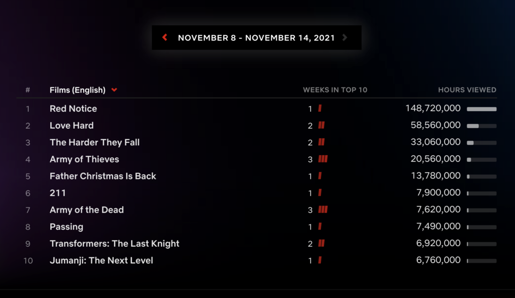 Según The Verge, el nuevo panel semanal del Top 10 de Netflix será actualizado cada martes con listas de sus películas y series más vistas en diferentes categorías y cada lista mostrará la cantidad de horas que la serie o película fue vista.
