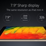 Pasando a otras características, la pantalla de este gadget es de 7.9 pulgadas con resolución de 2048×1536 píxeles, lo que se traduce en una densidad de 326 ppp. También trae consigo un procesador Intel Atom X5-Z8500 de cuatro núcleos a 2.24 GHz con gráficos Intel HD, 2 GB de RAM, un puerto USB Tipo-C, una cámara trasera de 8 MP y una delantera de 5 MP, y un almacenamiento interno de 16 o 64 GB, a elección del usuario.