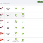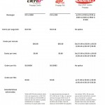 Para poder crear una lista comparativa de varios de estos planes, sólo hace falta palomear la casilla de aquellos que deseemos y hacer click en el botón de Comparar. Una vez hecho esto, aparecerá una nueva ventana en donde, en forma de tabla, se ponen frente a frente las características específicas de cada plan, donde también se indican los costos por minutos, mensajes y datos adicionales, así como las cláusulas a tomar en cuenta.