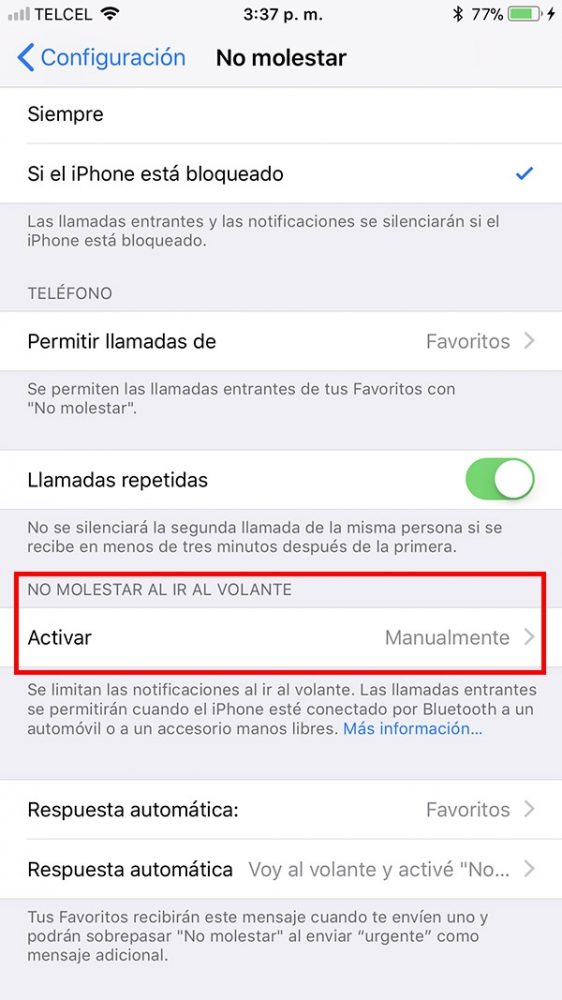 Una de las nuevas configuraciones es la de no recibir ni llamadas y mensajes al estar manejando en un automóvil, esto con el claro objetivo de prevenir accidentes y aunque lo ideal seria dejarlo de esta manera. Seguramente muchos lo querrán modificar ya que muchos optarán por escuchar el tono de los mensajes o saber si alguien les llama en ese momento aunque no contesten. Configuración > No Molestar > No molestar al ir al Volante