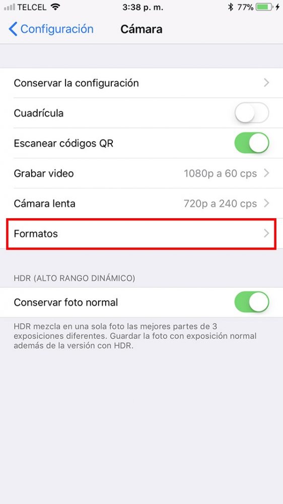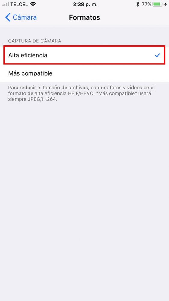 Una de las mayores novedades y ventajas del nuevo operativo es la llegada de un nuevo formato de imágenes el cual reduce drásticamente su peso con lo que ahora es posible guardar prácticamente el doble fotografías, lo único que deberas de hacer es cambiar el formato y listo. Configuración > Cámara > Formatos