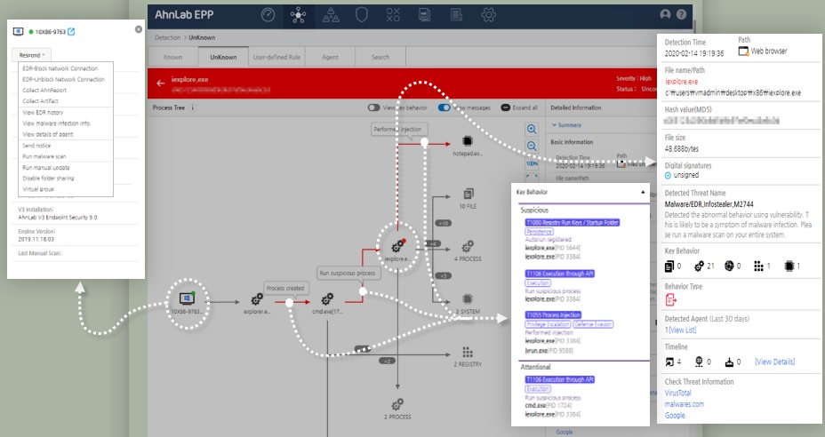Finalmente está AhnLab EDR, una herramienta que monitorea constantemente las computadoras y para así encontrar peligros potenciales y hacer un análisis de cómo, cuándo y en dónde inician los problemas de seguridad.