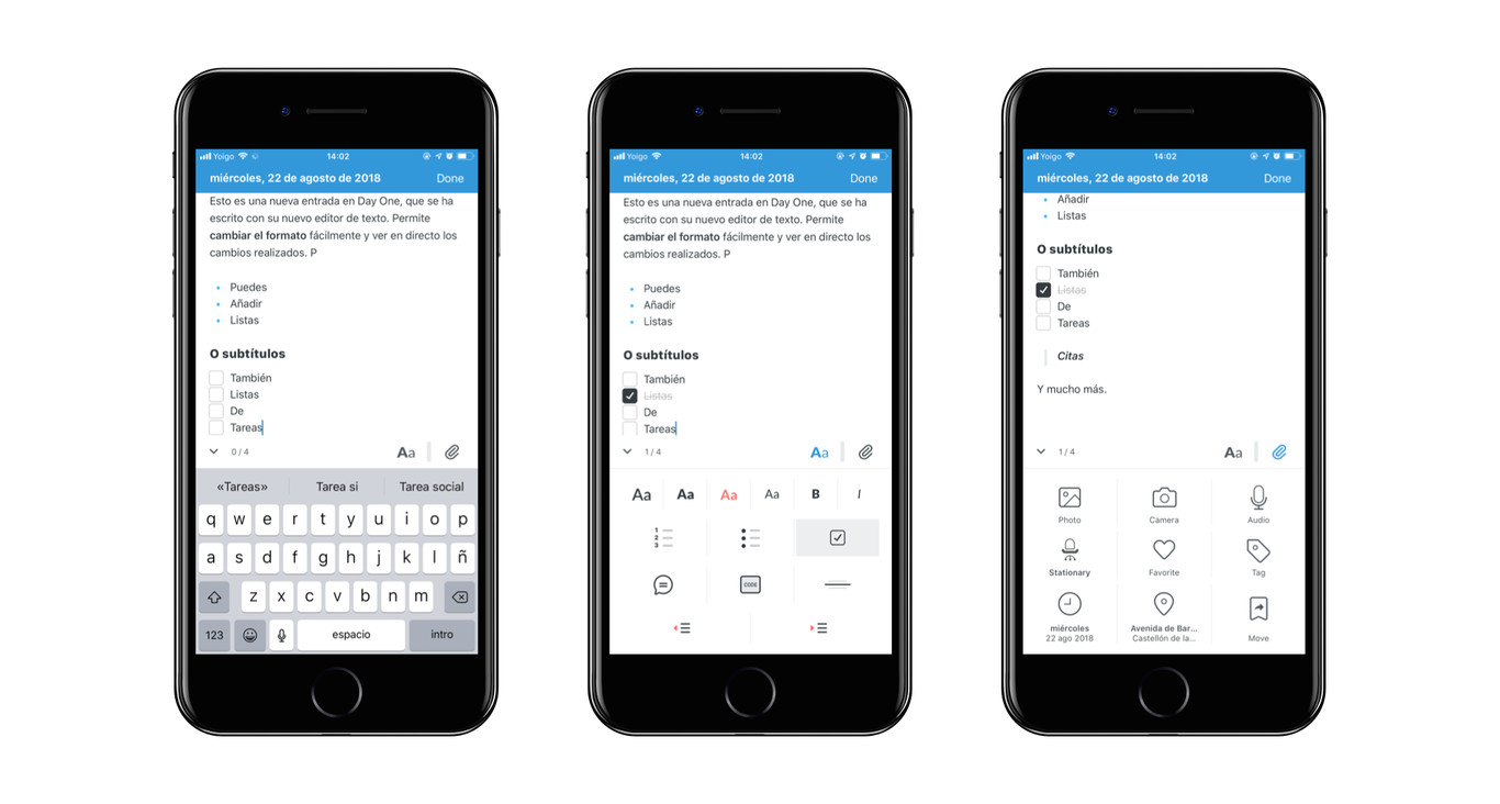 Las demás actualizaciones se pueden apreciar si se mira la barra de pestañas o el rendimiento que tiene la app en el celular, así que si se desea hacer uso de todas estas características, se puede descargar Day One desde la App Store, pero si se requiere de más funciones, se puede pagar el plan premium, el cual tiene un costo de 33 dólares.