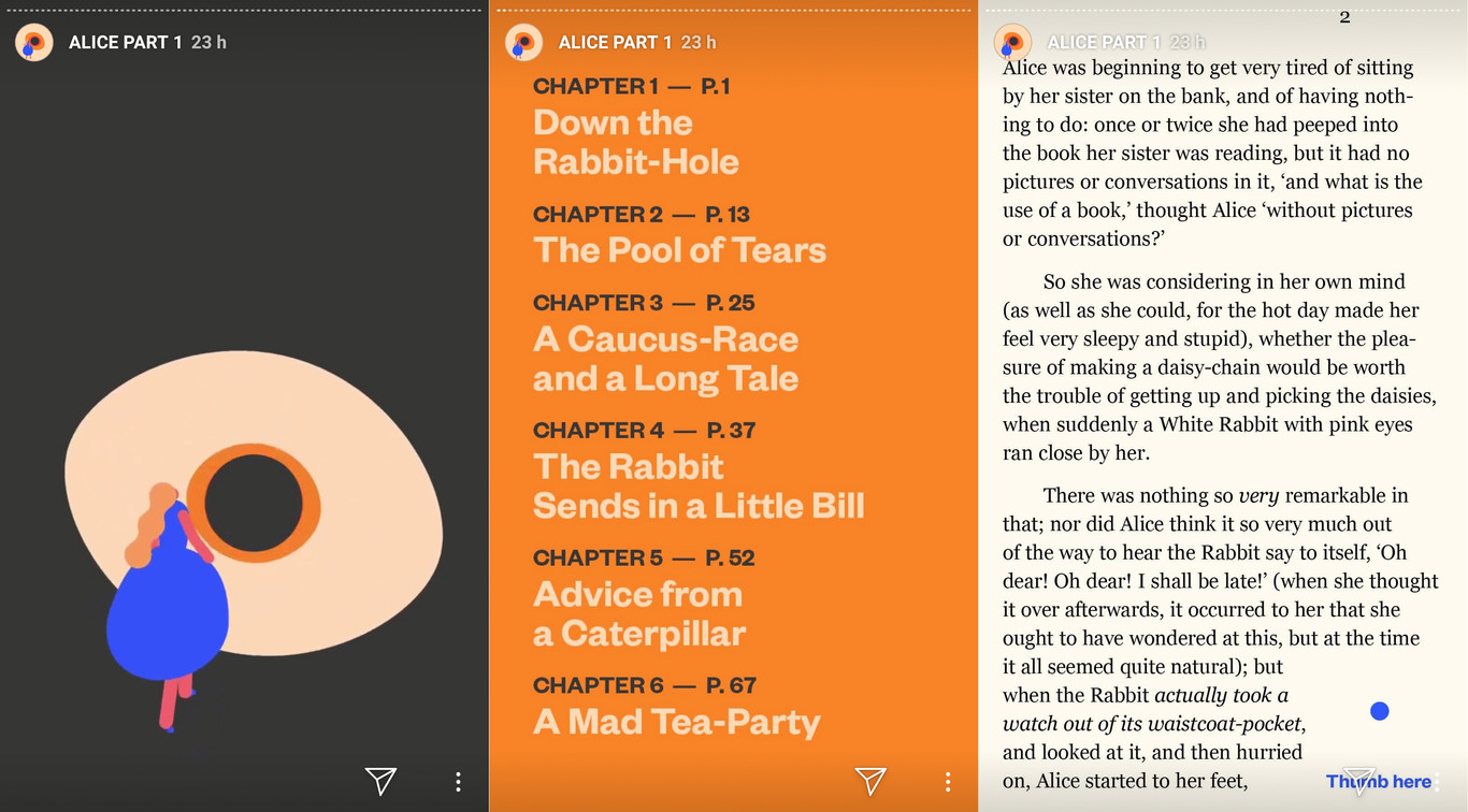 Los llamativos diseños, se suman a la interactiva manera en que se leerán los textos, los cuales se encontrarán en formas de historias de Instagram, pero con el detalle que tendrán un lugar especial para colocar el dedo y de esta manera poder pasar a la siguiente “pagina”, sin tener que perderse de alguna línea.